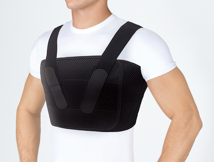 максимально плотно оденьте бандаж на грудную клетку (без возникновения болевых ощущений)